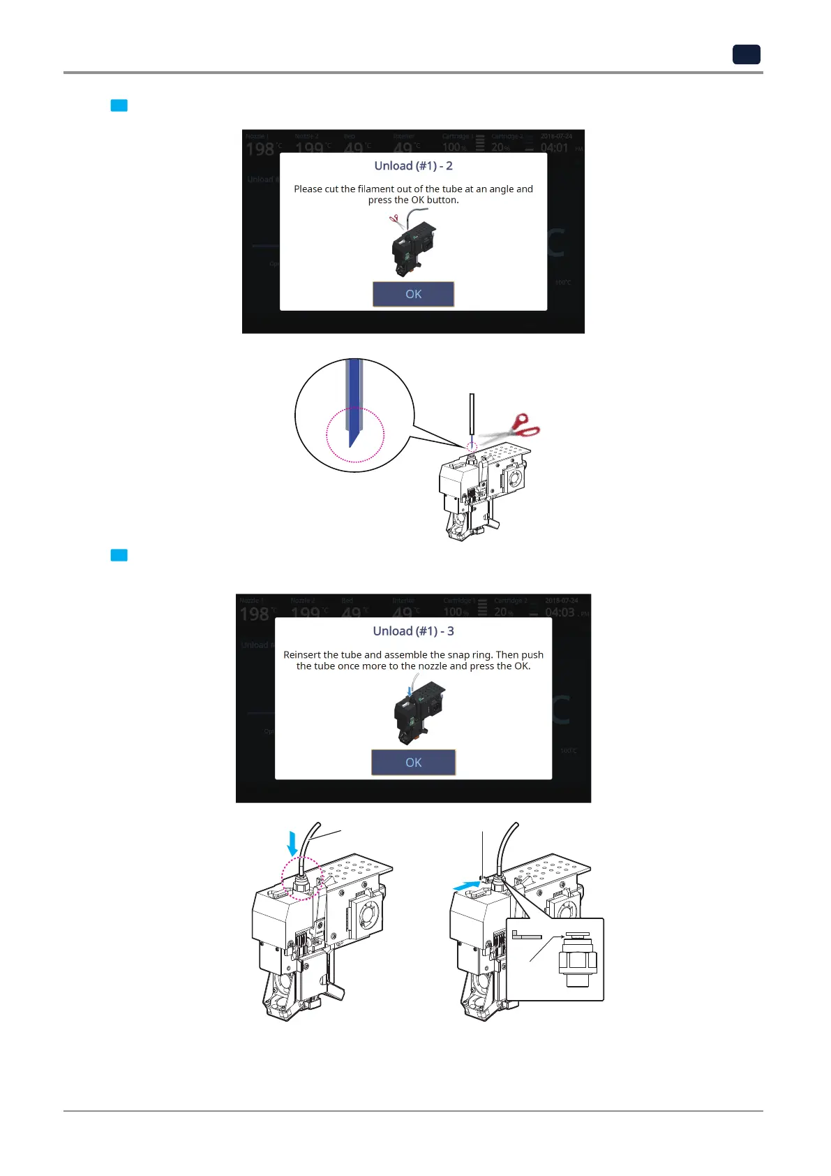 4 Cut the filament that came out of the tube as shown below and press the [OK] button.