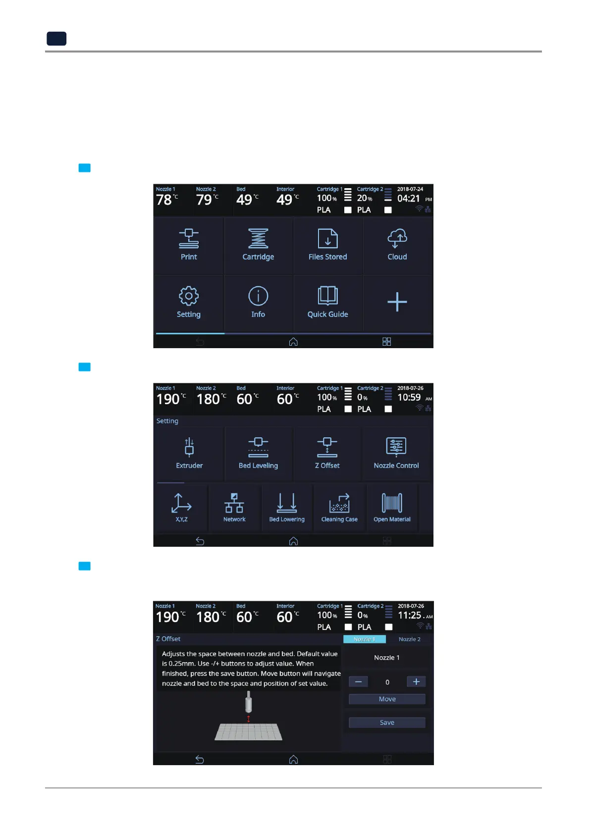 2 Press the [Z Offset] button to access Z Offset screen.