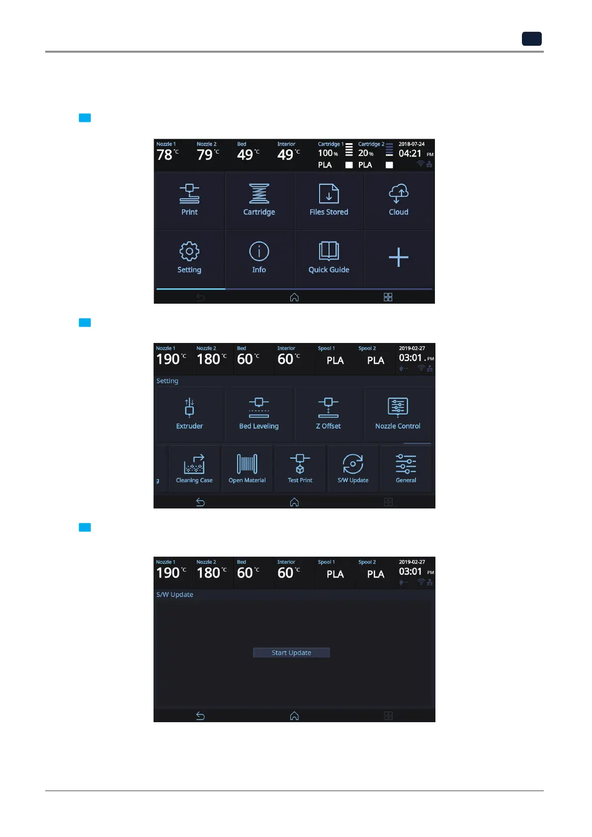 3 Press the [Start Update] button, and printer will start updating. After it has finished, restart the printer and