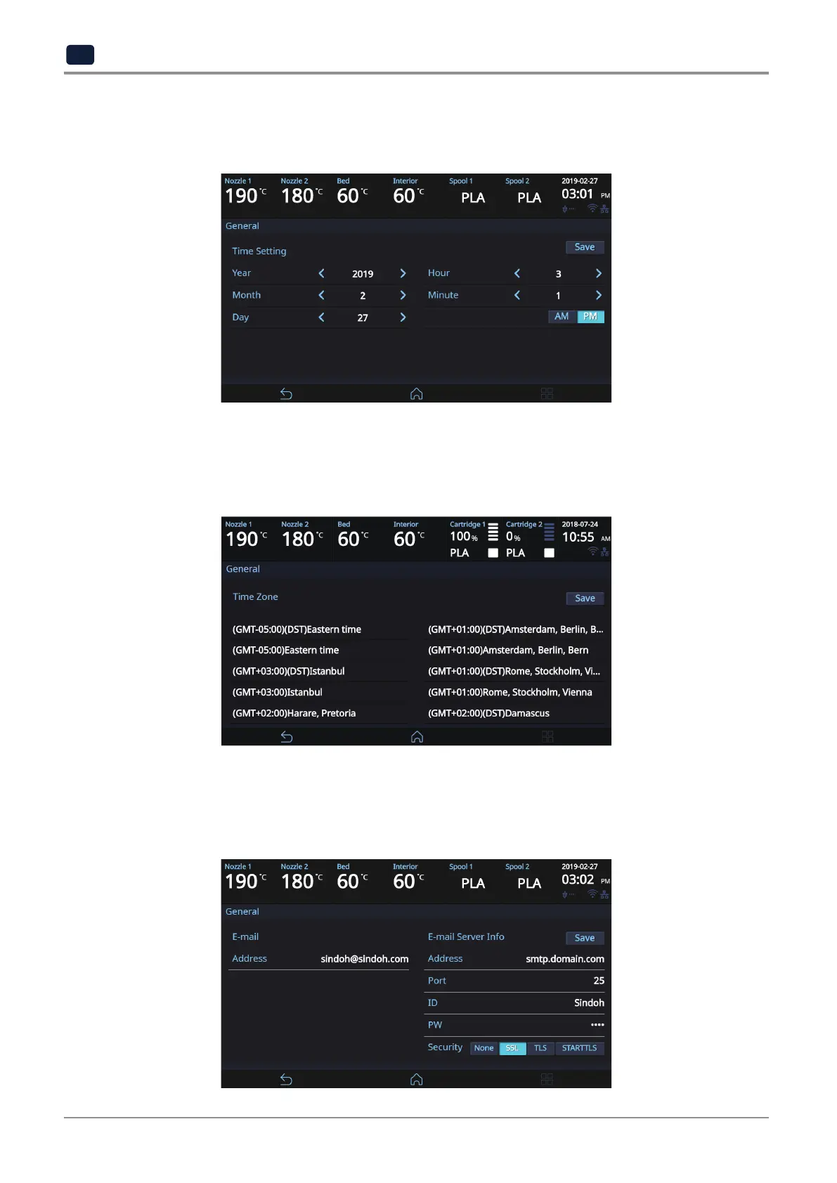 Configure the settings to send an e-mail from the 3DWOX device.