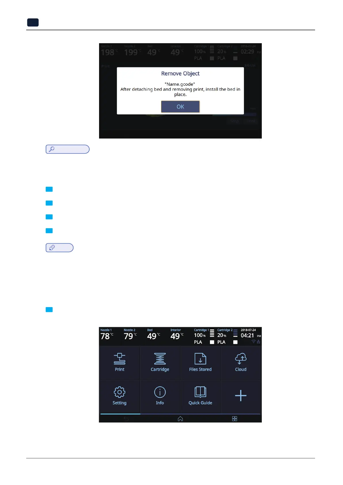 Methods of removing printables refer to P. 4-2 “1. Printed Output Check”.