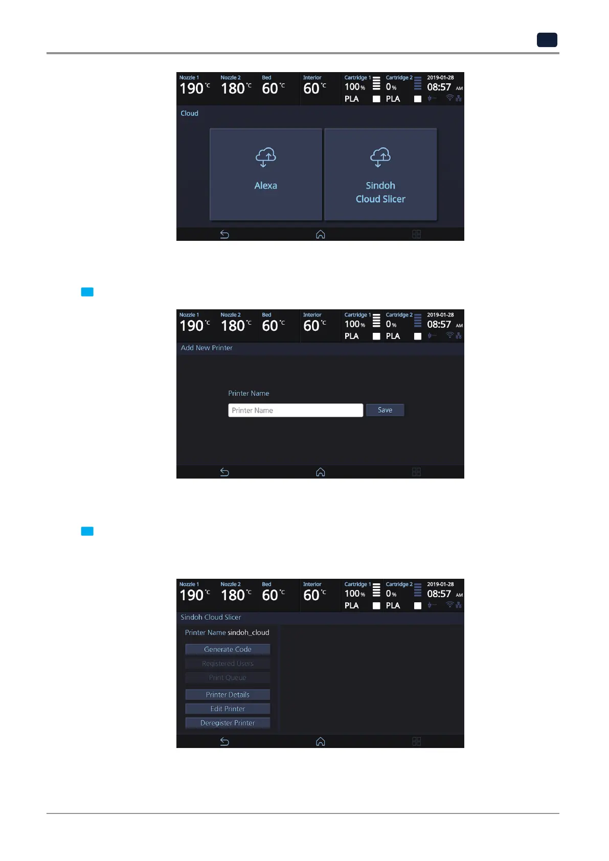 * Alexa and Sindoh Cloud Slicer app share Printer registration information.