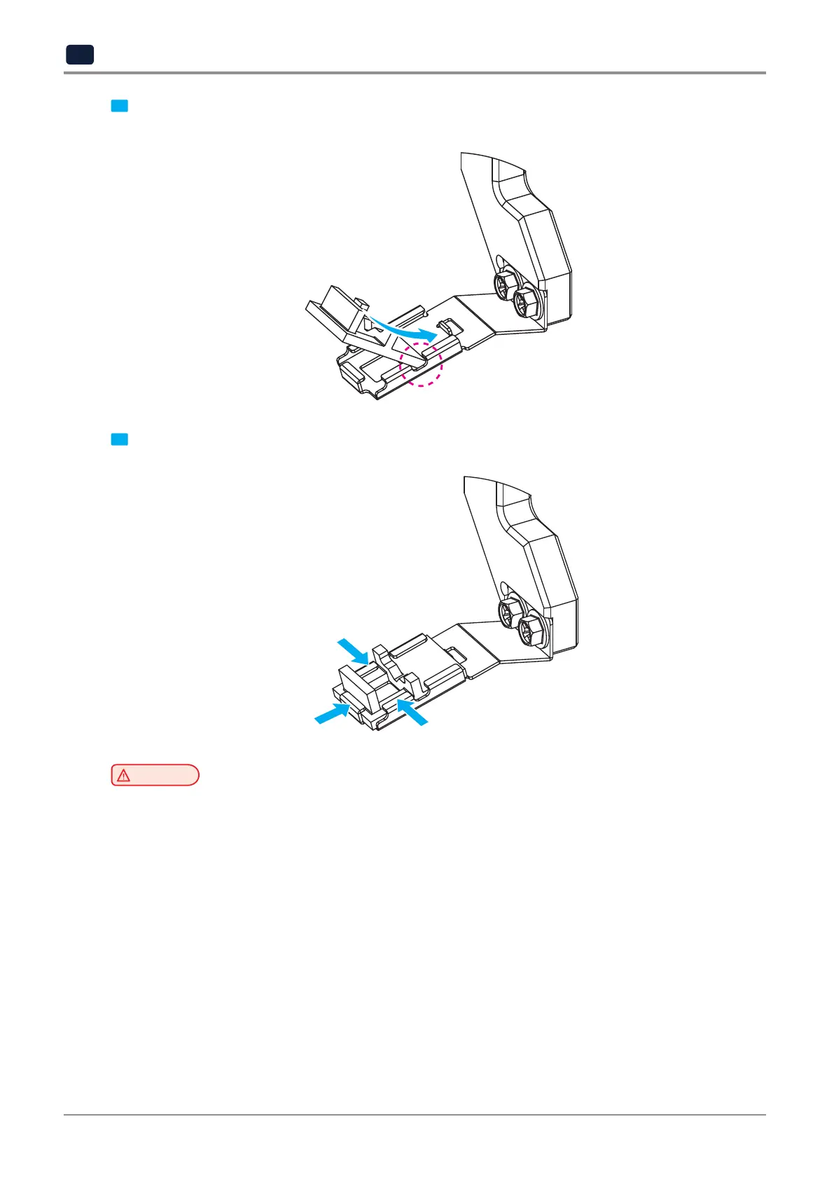 3 After inserting the pad, check that the pad is held by the hooks in three directions, as shown in the following