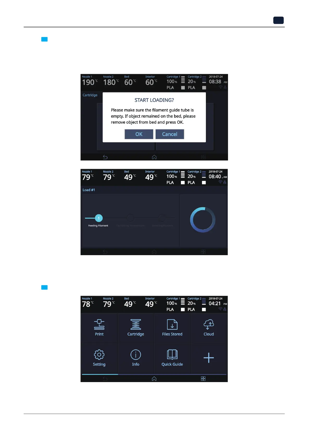 inserted into the heated nozzle. After the process has finished, screen will automatically return to the [HOME]