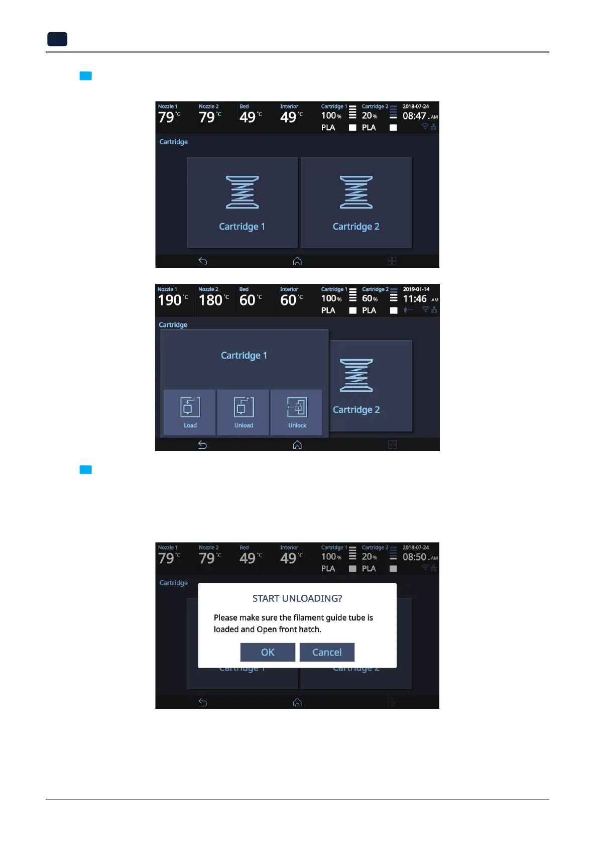 3 When [OK] is pressed at the cartridge unload confirming message, cartridge unloading will automatically