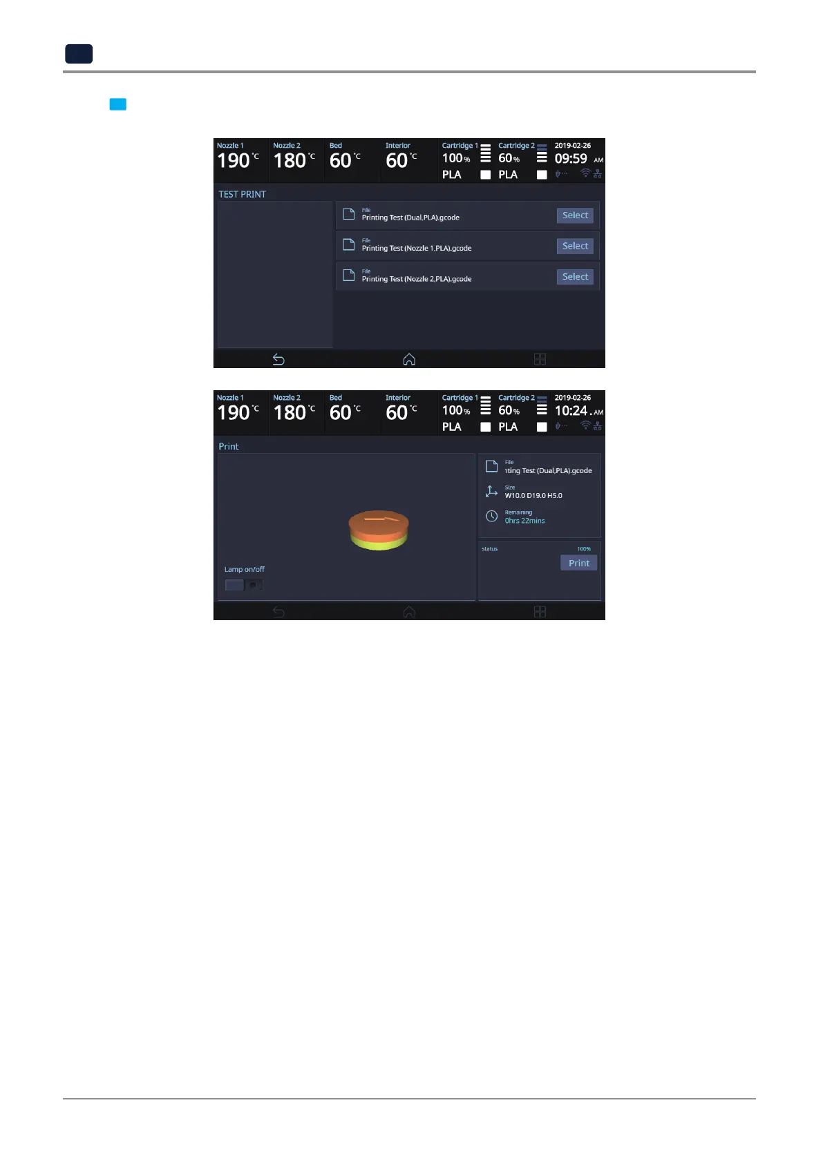 3 Select the test file to print.