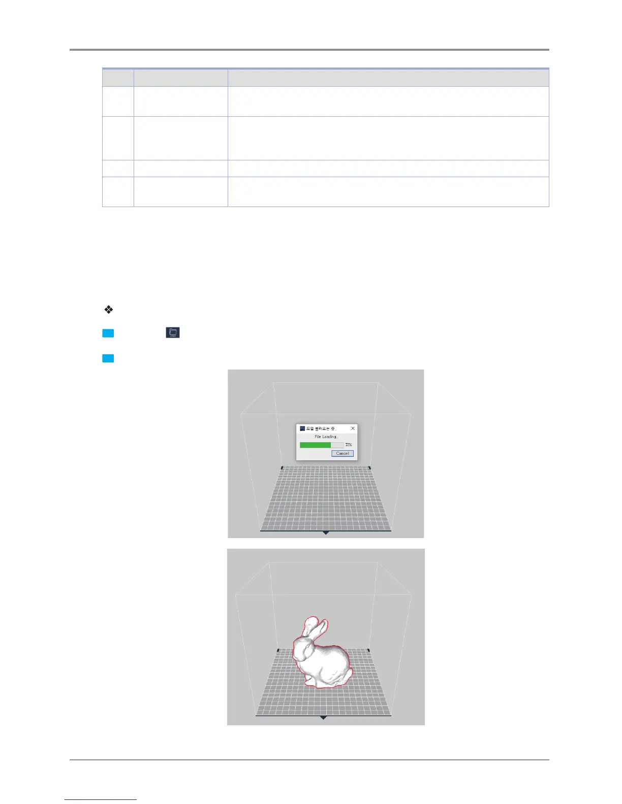 2 After selecting file, 3D model file is displayed as if it’s on the printer bed.