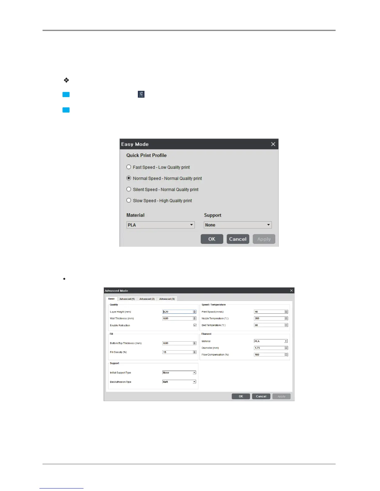 layers, and to the printing speed, various parameters should be configured.
