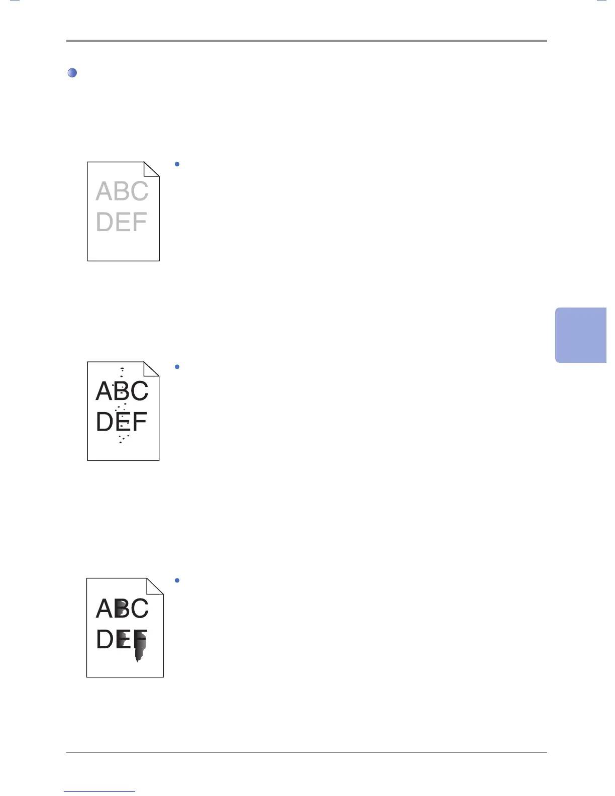 Solution: 1) The toner may have run out. Replace the toner cartridge.