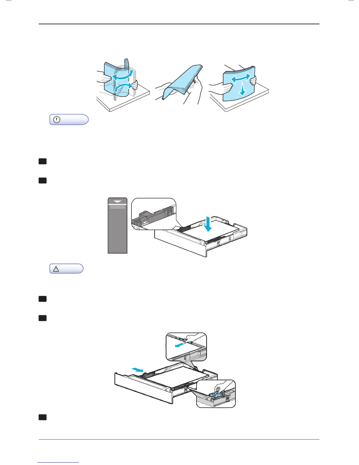 - For label paper, thick paper and other paper smaller than A5, load it to the Thick mark.