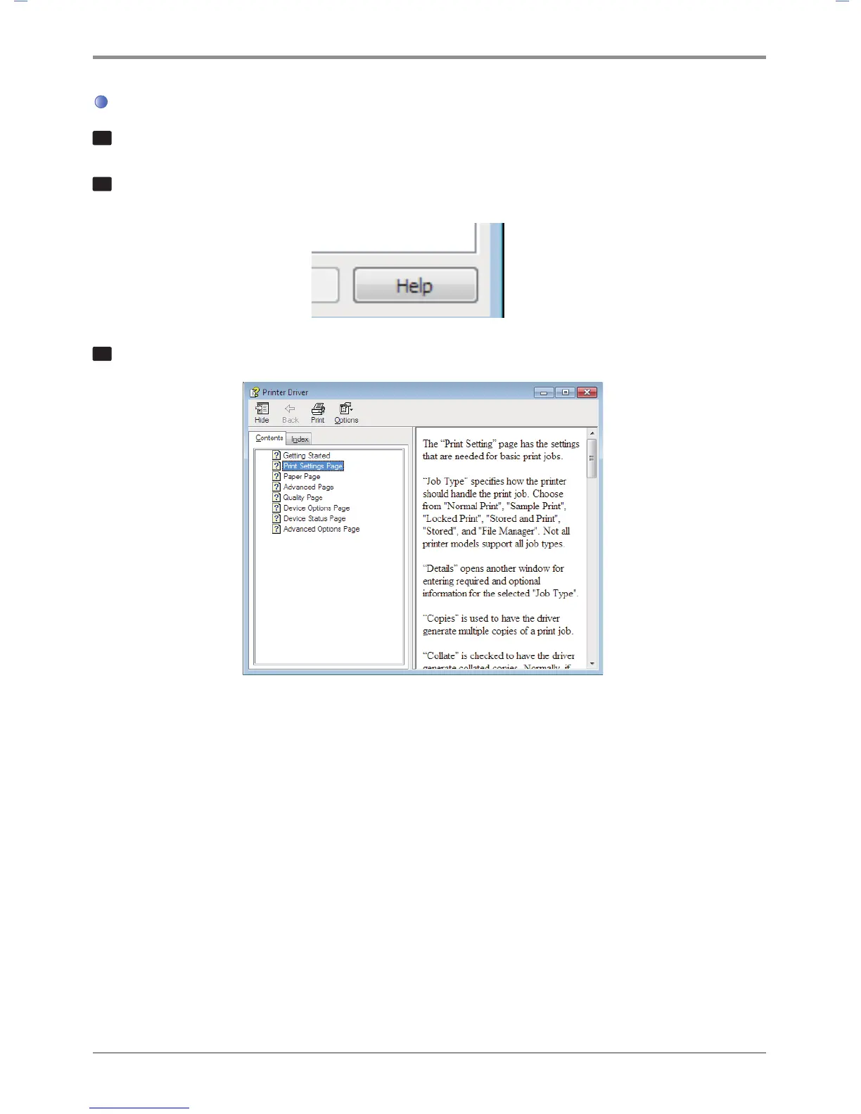 Select “1” and “2” to open the help window on functions provided by the driver.