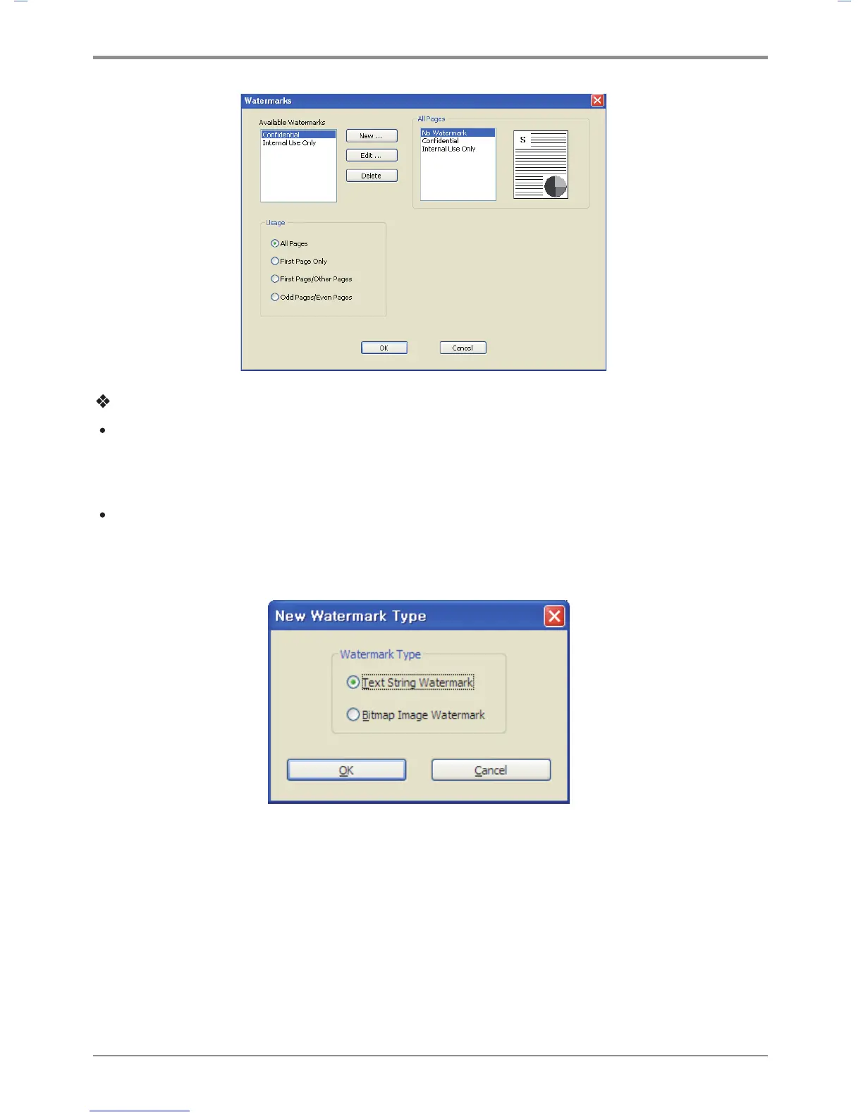 - The new watermark type window appears. Select Text Watermark or Bitmap Image Watermark.