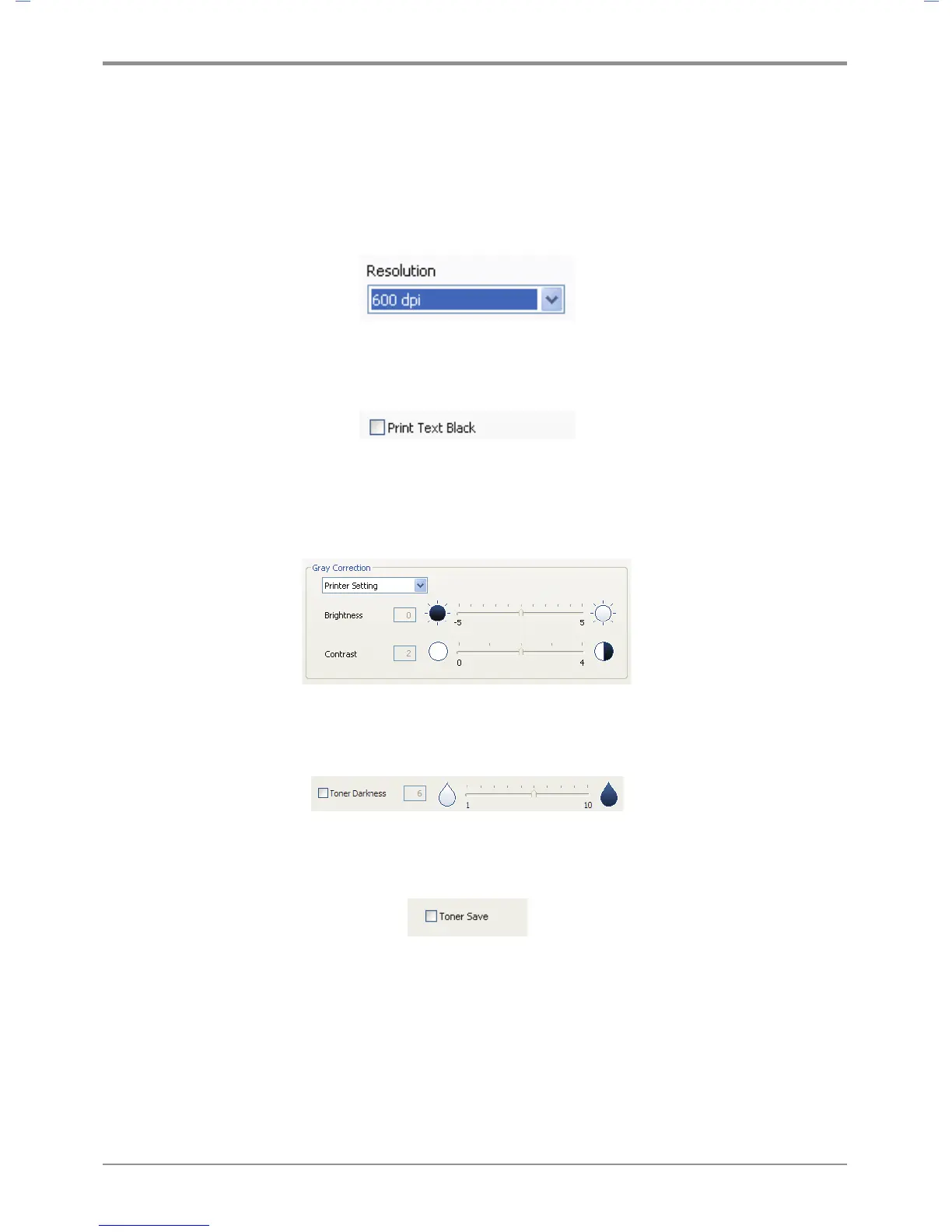 You can select a different resolution for your print job. With this option you can select the resolution Dots