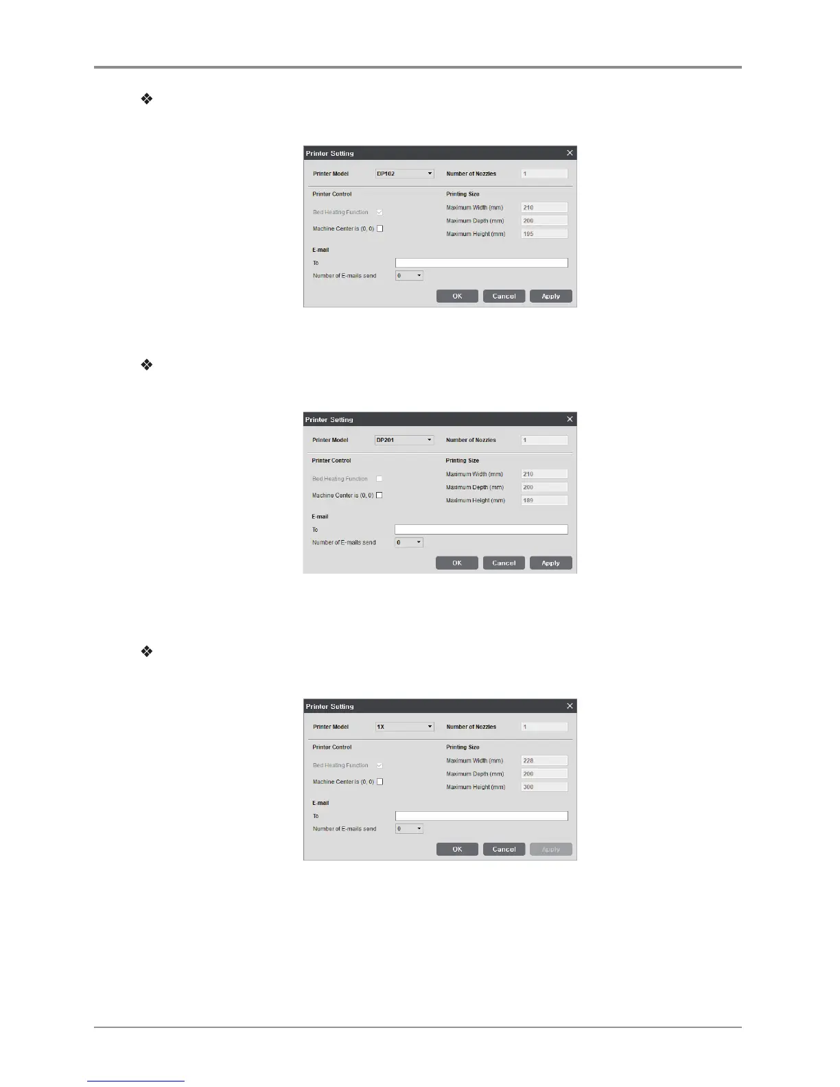 Bed Heating Function: This function is deactivated for DP201/DP202.