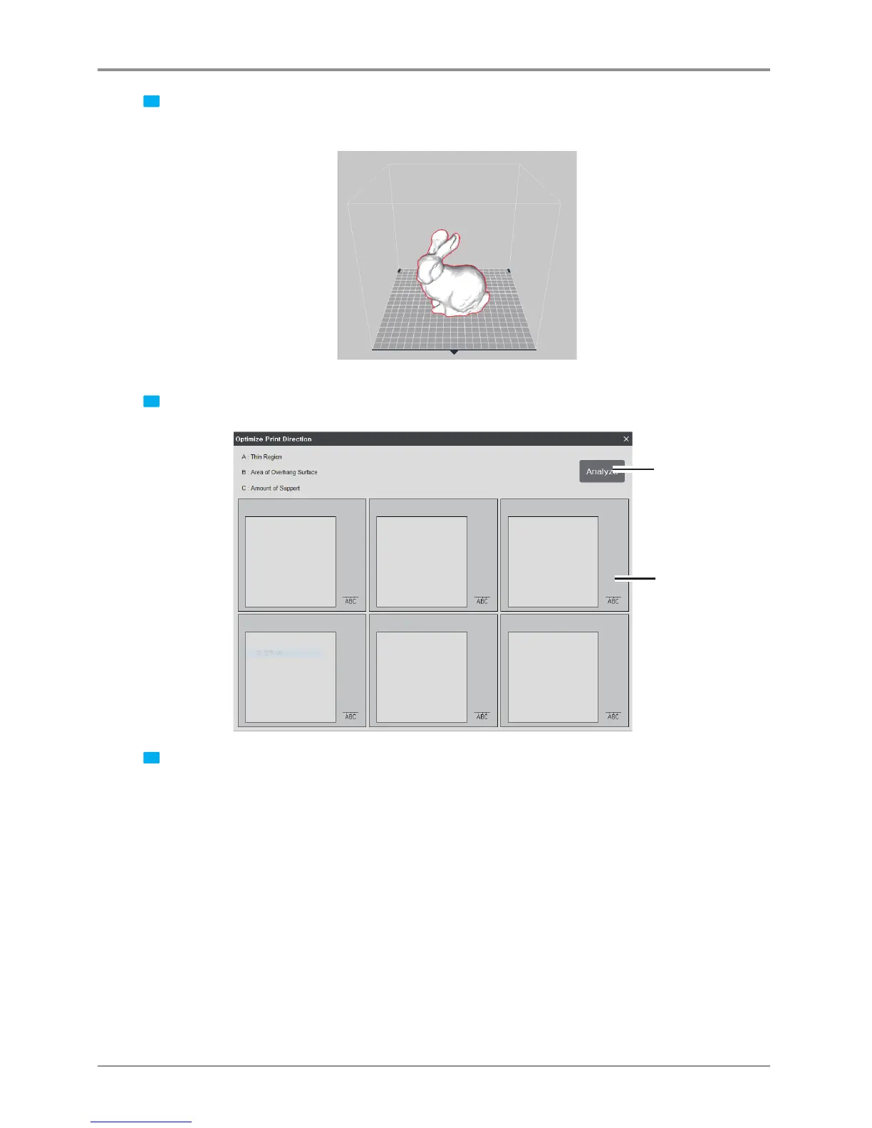 2 In Analysis menu, select “Optimal Printing Direction” and a window similar to the following appears.