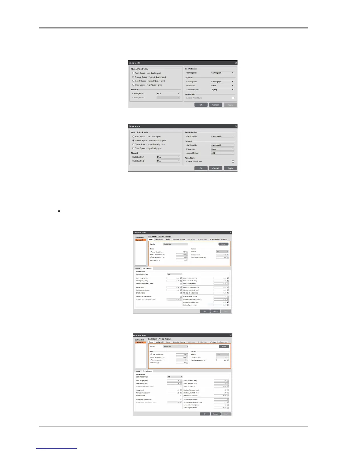Easy mode can be set for printing speed-quality, material, support pattern, and inside filling.