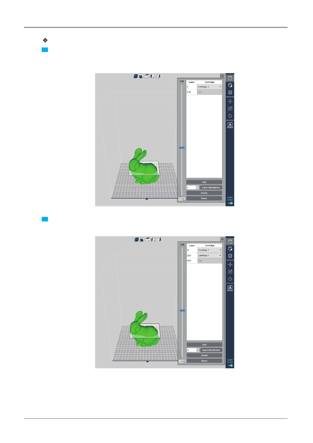 2 Then, another tab is created to replace cartridges by layer. Move the slider, and press the [Add] button to