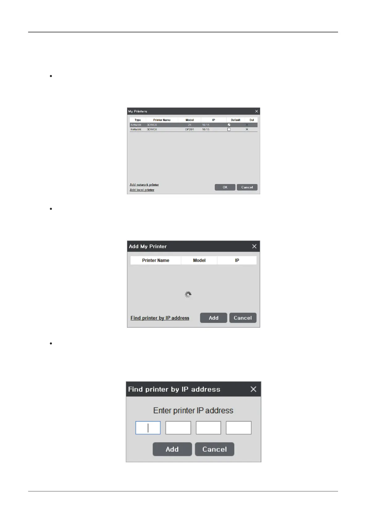 After typing the IP address, press “Add”. if the IP address is available, the printer within the IP address will be
