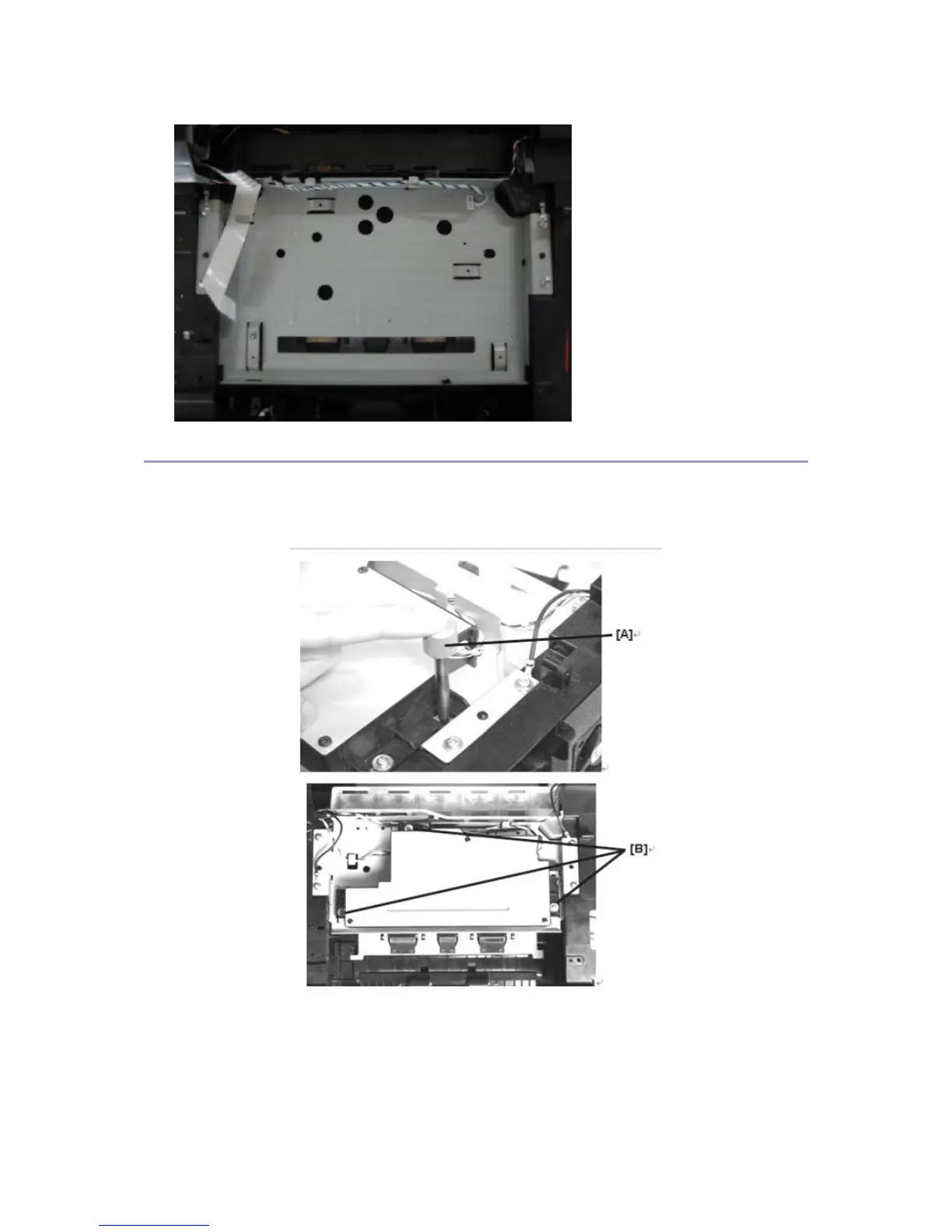 18. Before tightening the laser unit with screws, use skew JIG [A] to position the laser unit and tighten 3