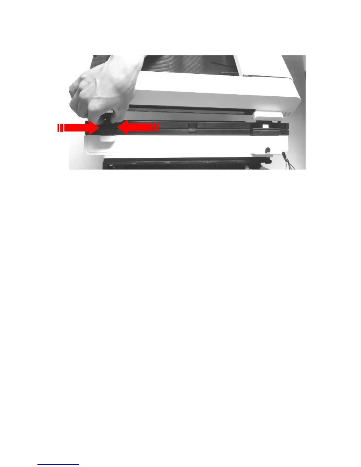 5. Press the right ADF assembly hinge to arrow direction and lift it up to remove it from the printer.