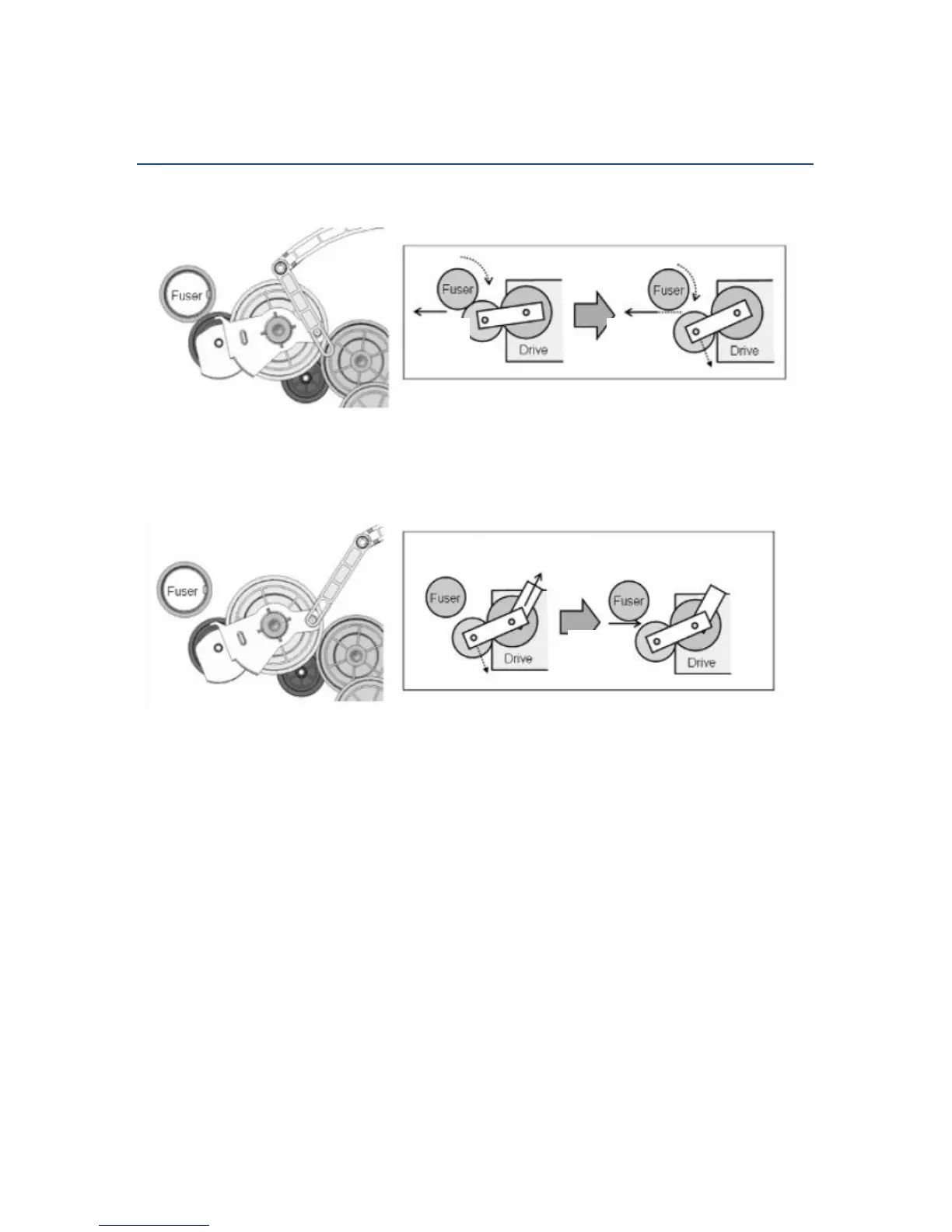 The gear link gets pushed back and disconnects gear connection and allows it to remove jammed paper.