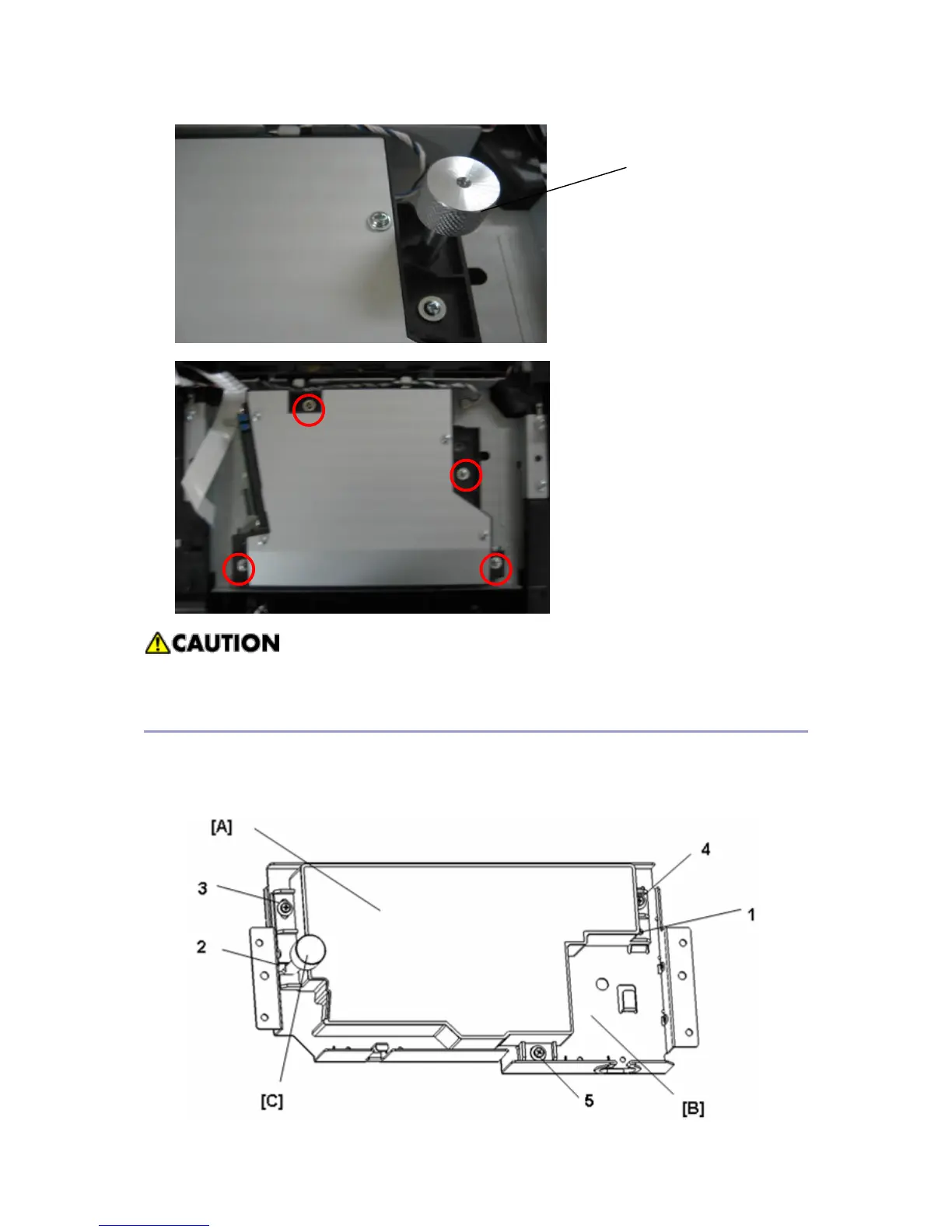 When re-installing the laser unit, check the laser unit’s alignment and proceed with the “Laser Unit
