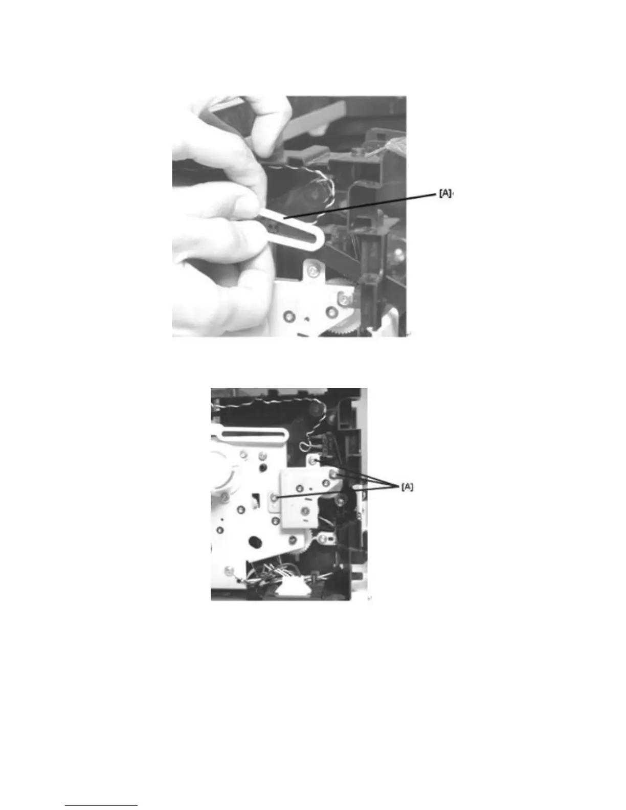 11. Remove link gear [A] and 4 screws [B] on main driving gear.