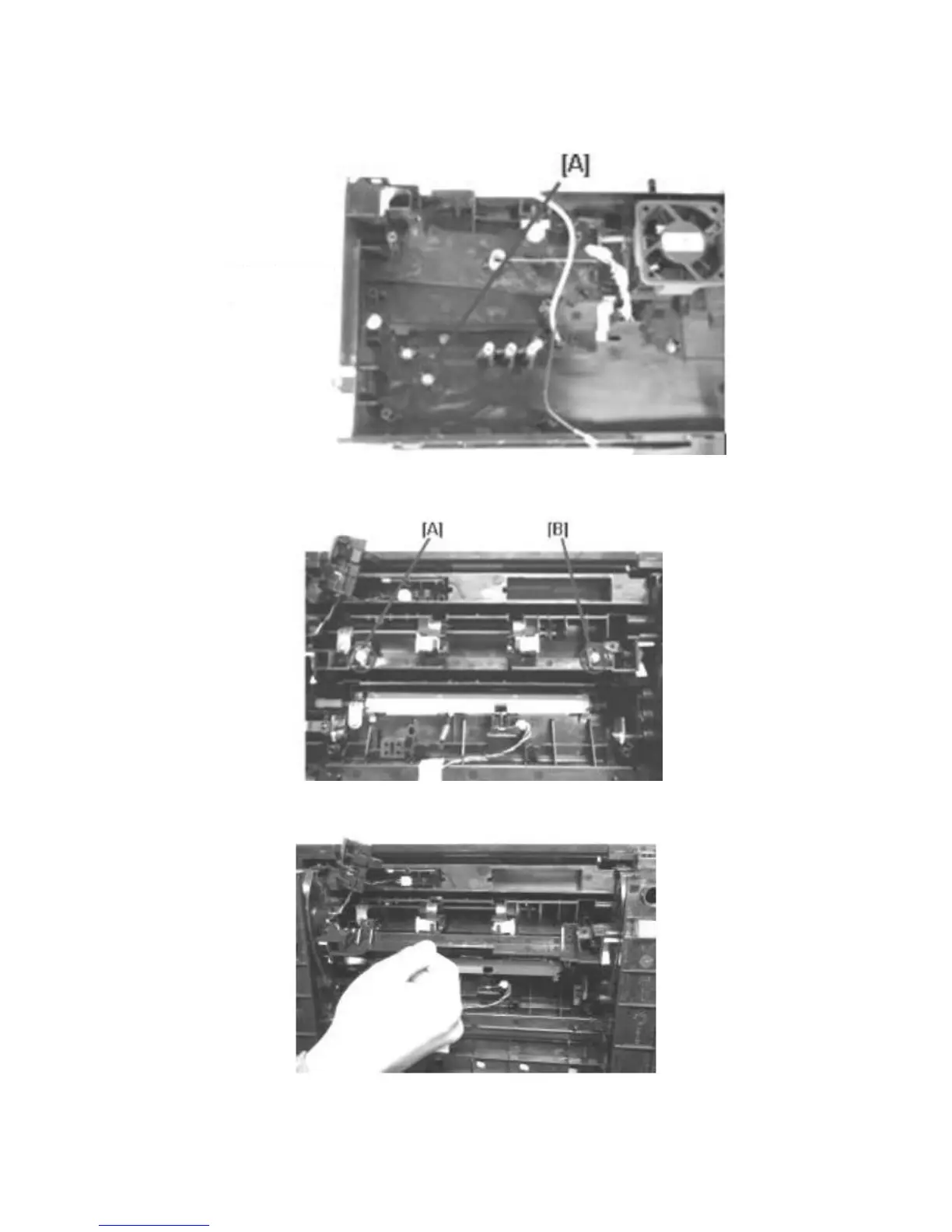 10. Remove 2 screws [A] and [B] to remove the duplex unit’s front guide.