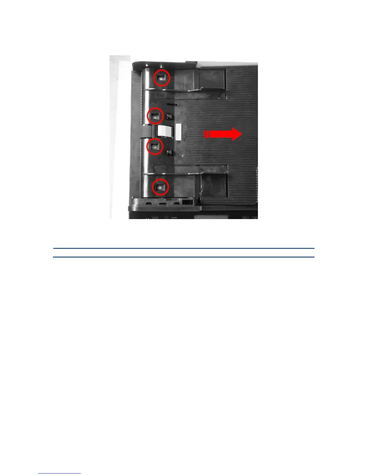 4. Remove 4 screws and lift ADF document tray assembly to arrow direction to remove it.