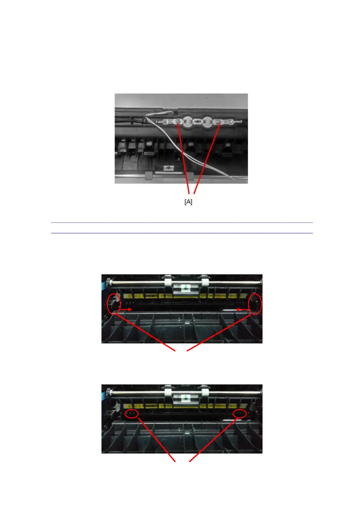 3. When assembling, place the cleaning roller assy on the right position and fasten it by