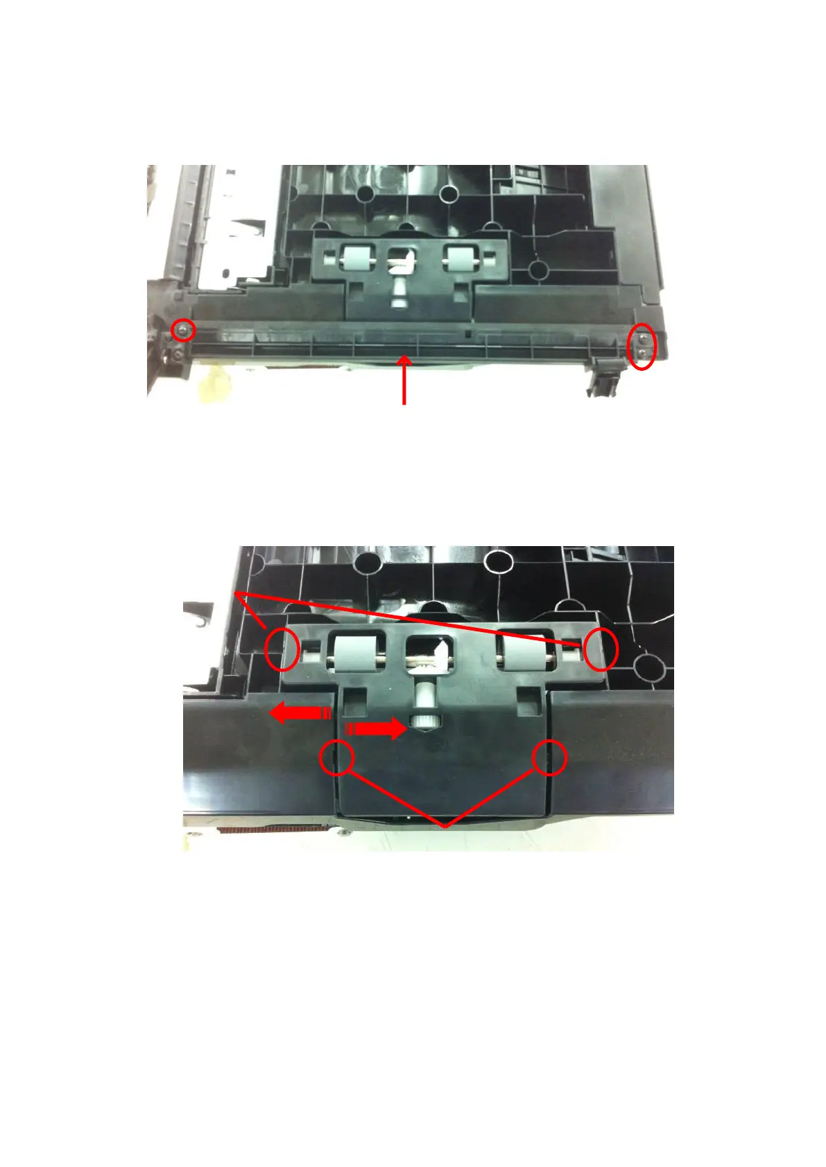 Separate A3 assembly from ADF frame by pushing the boss in the arroiw directions