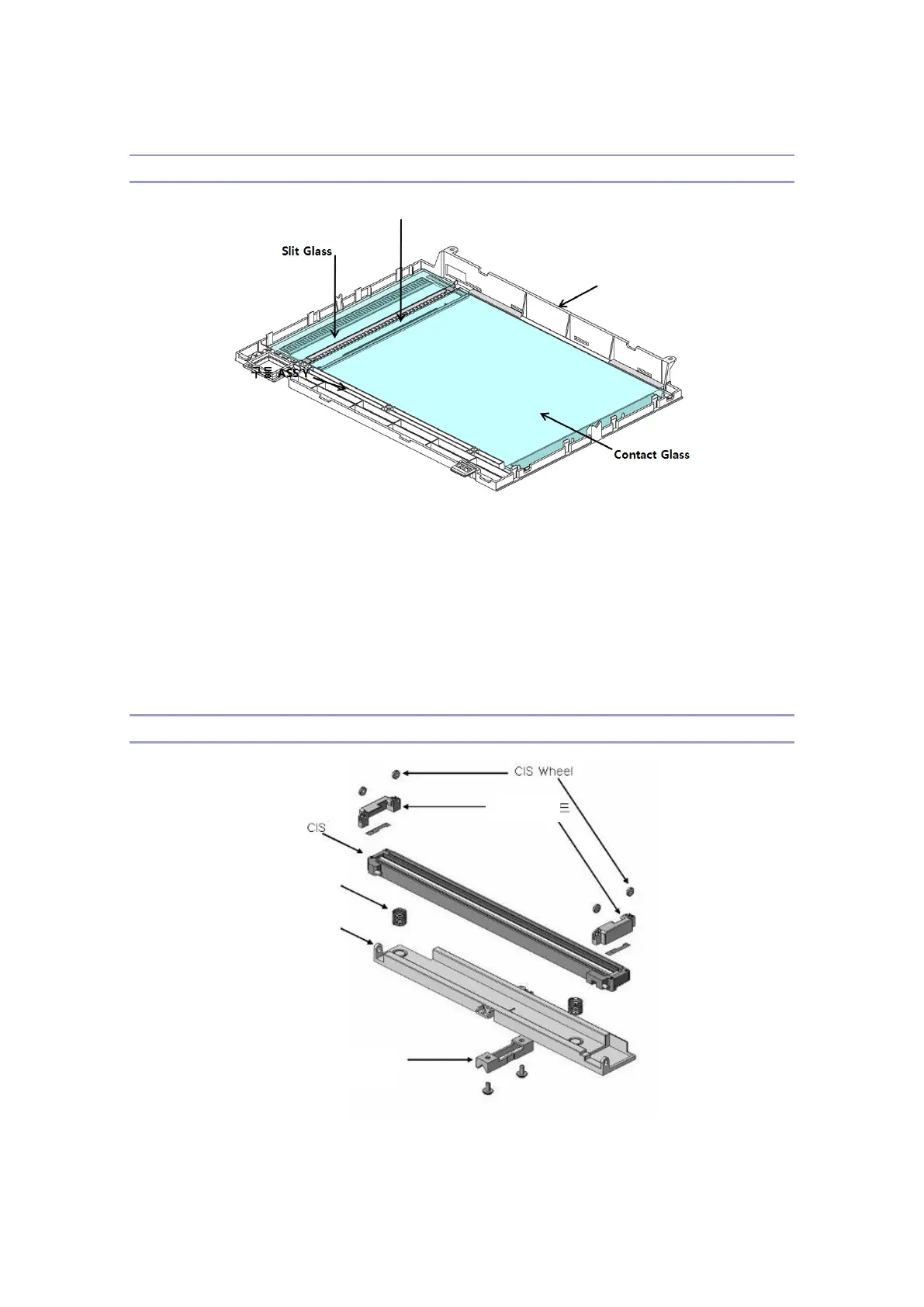 The Scan cover Assy consists of Scan cover supporting the entire cover, Glass for placing