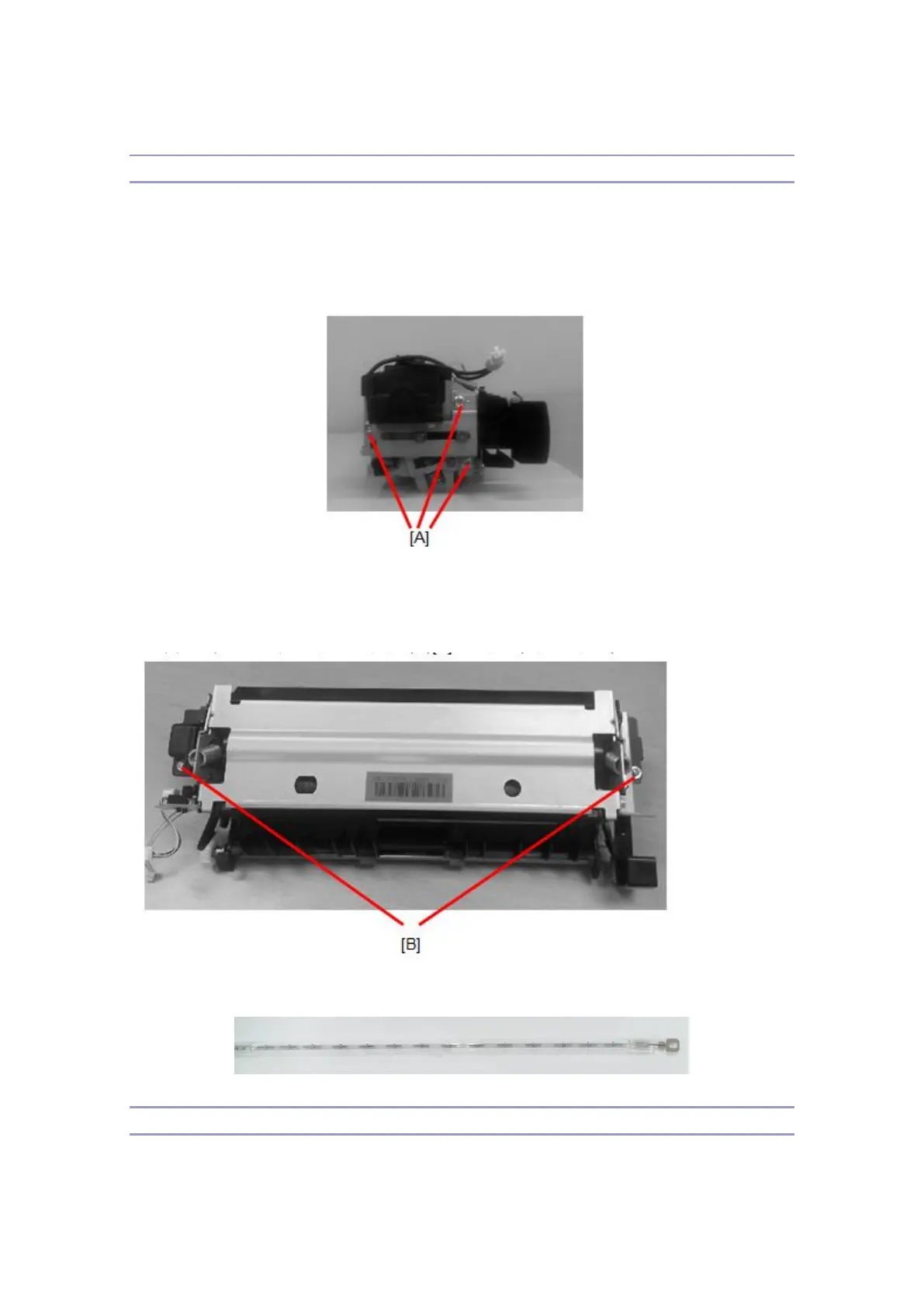 5. Dis-assemble the fuser assy by removing 2 screws[B] from 2 side covers of the