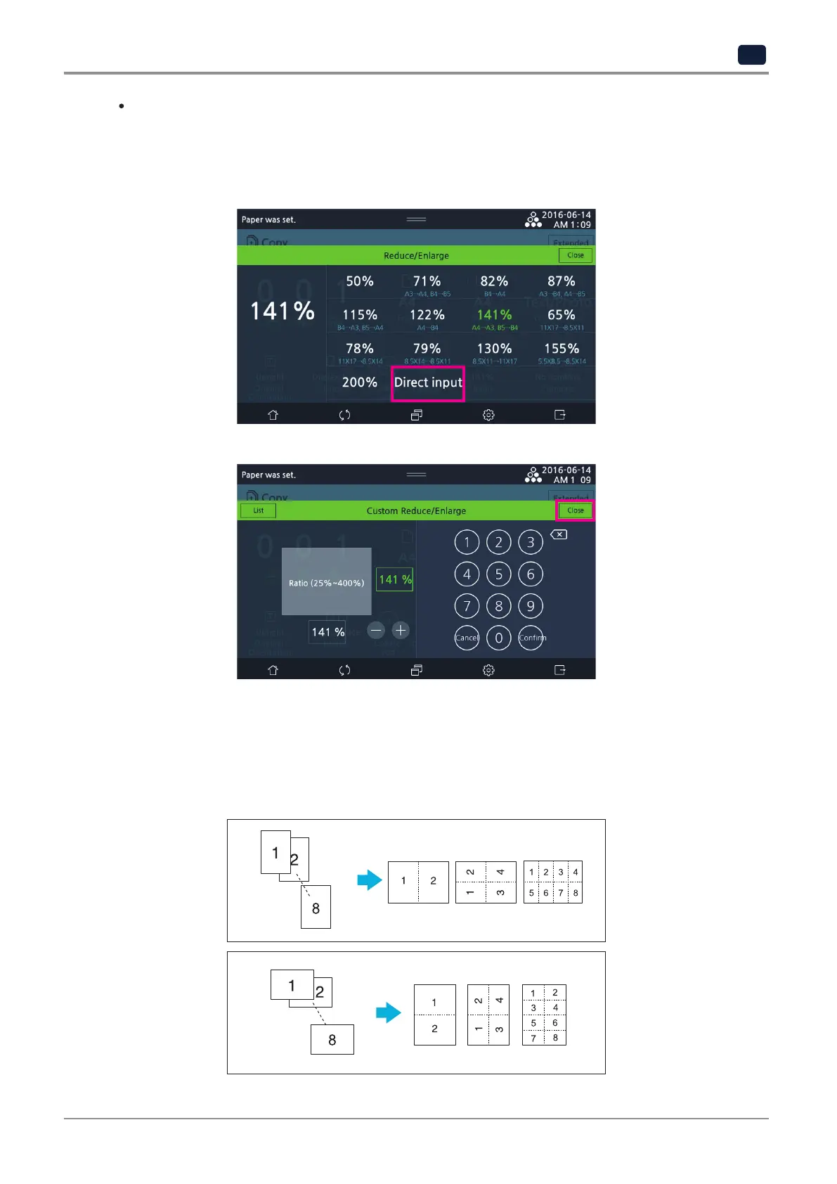 For others than preset reduce/enlarge on the LCD screen, select [Direct input].
