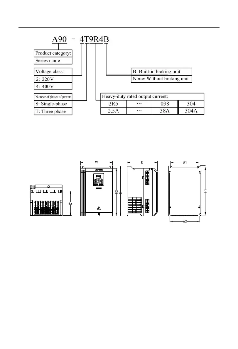 (a) Appearance of A90-4T1R5B to A90-4T045B inverters