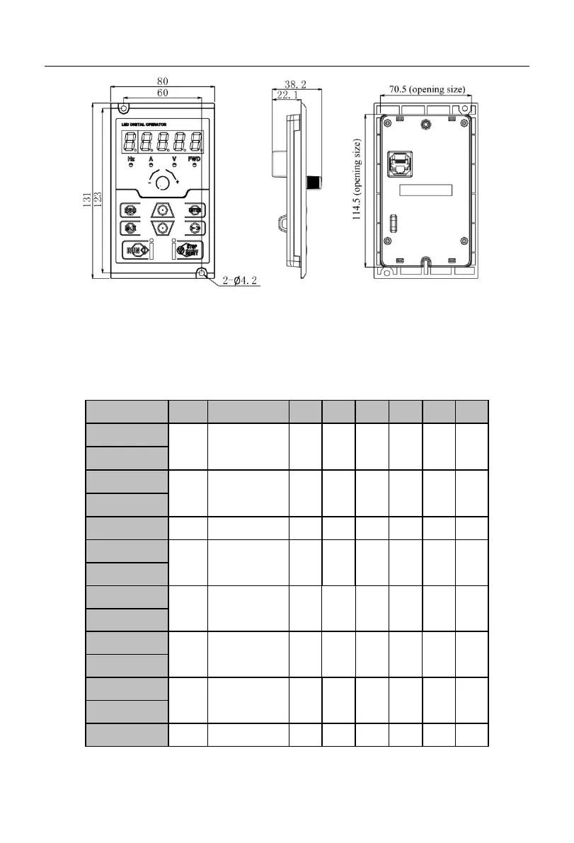 Table 2-2 Outline and Installation Dimensions of A90 Series Inverter