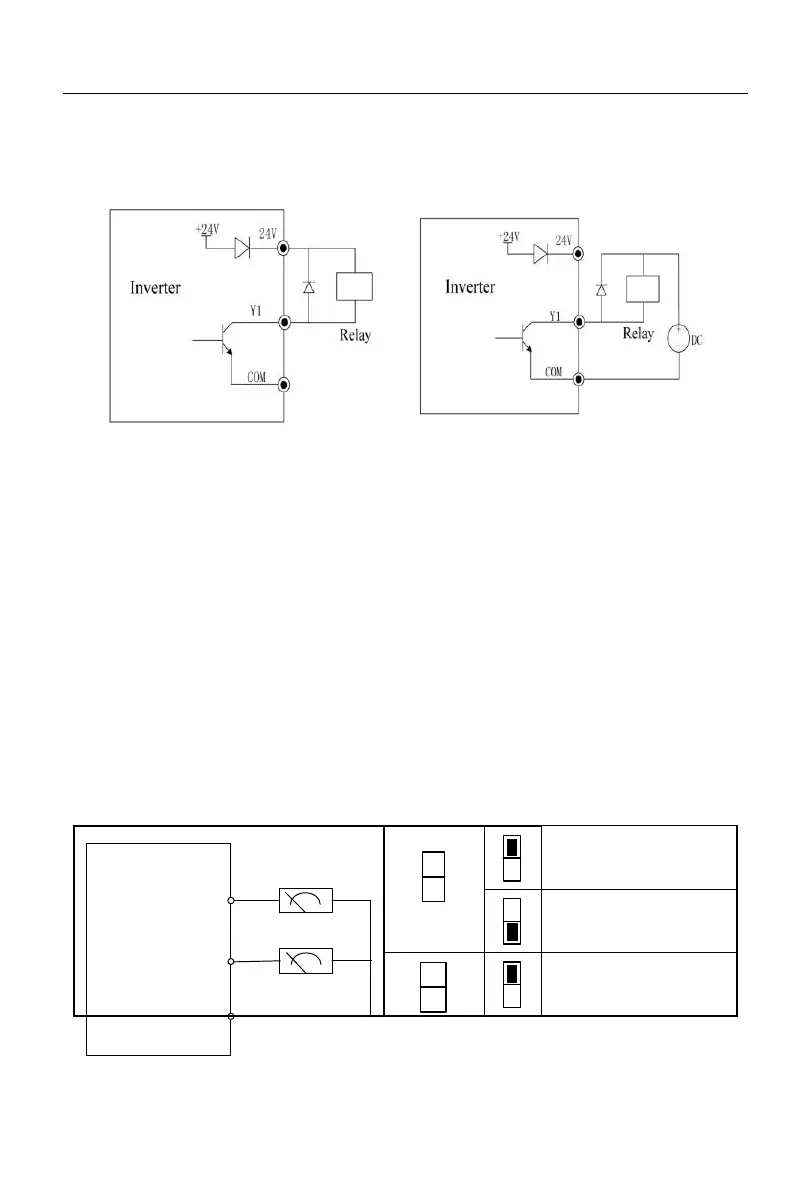 The multi-function output terminal Y1 is powered on by the internal 24V power supply of the inverter or