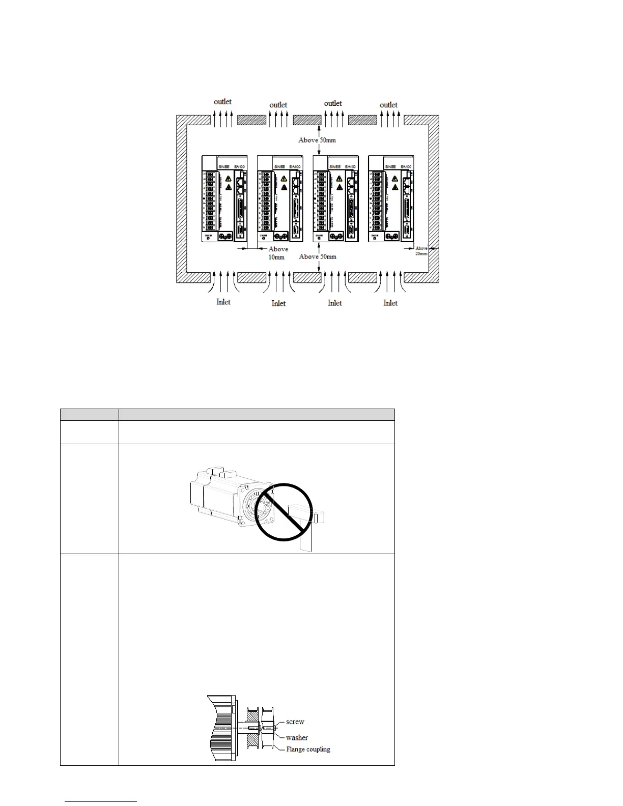 In order to ensure the air convection, please refer to Figure 2-1, around the servo drive with enough space.