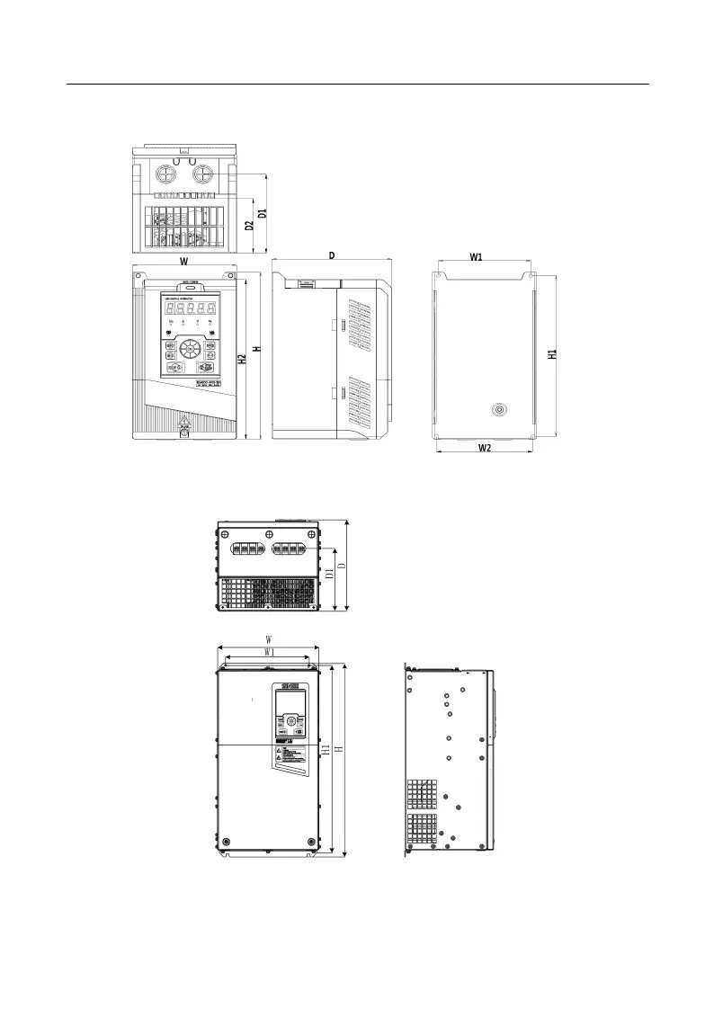(b) Overall Dimensions of 0.75 kW 18 kW Inverters