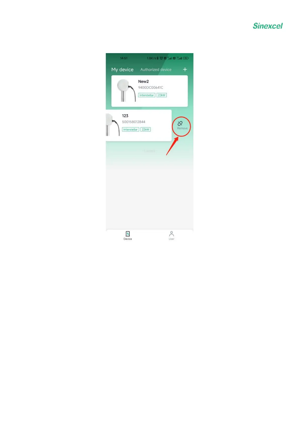 Sinexcel INTERSTELLAR Series - EVSE Device Unbinding