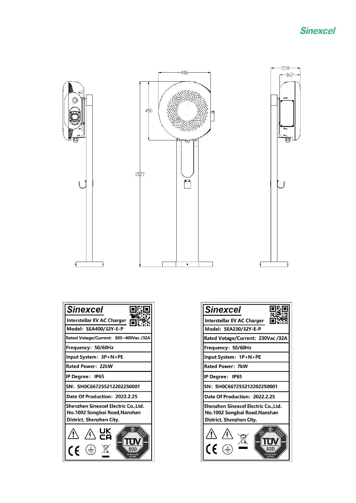 Sinexcel INTERSTELLAR Series - Pedestal Specifications; Nameplate Details