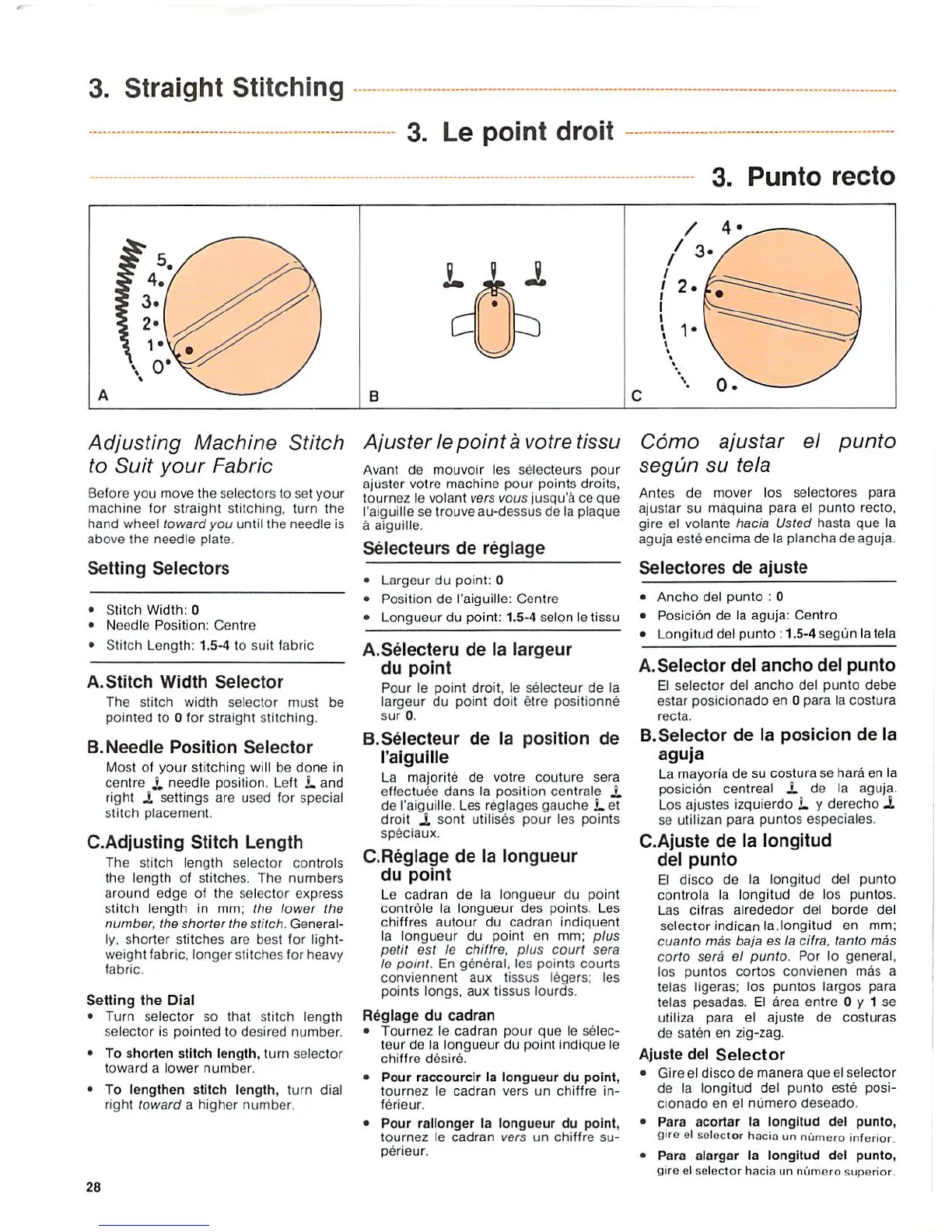 Singer 02; 22 - Straight Stitching; Adjusting Machine Stitch to Suit Your Fabrics; Setting Selectors; Adjusting Stitch Length