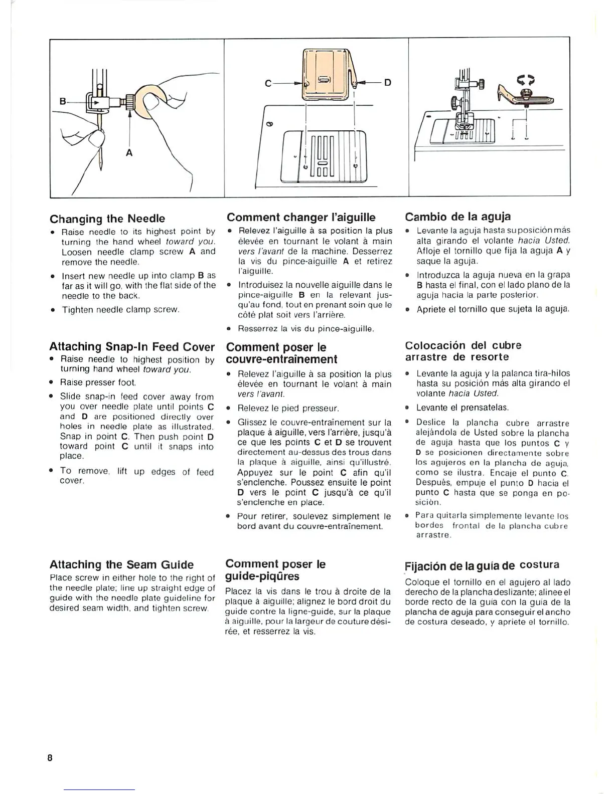 Singer 02; 22 - Changing the Needle; Attaching Snap-In Feed Cover; Attaching the Seam Guide