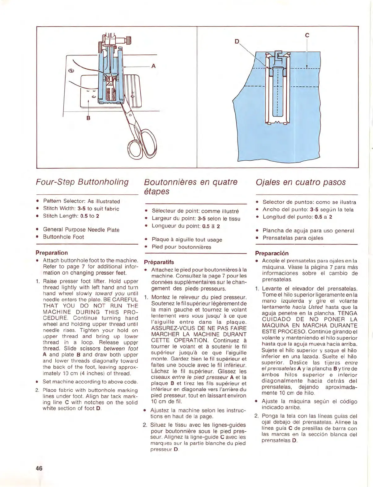 • Attach buttonhole foot to the machine.