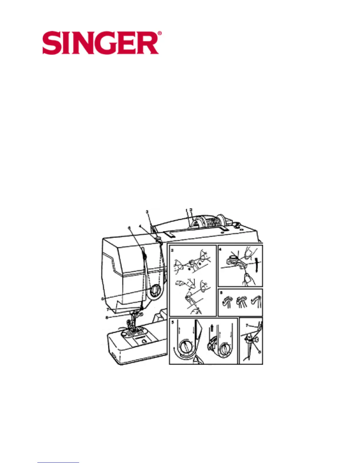 * Slip thread into take-up lever as illustrated (6).