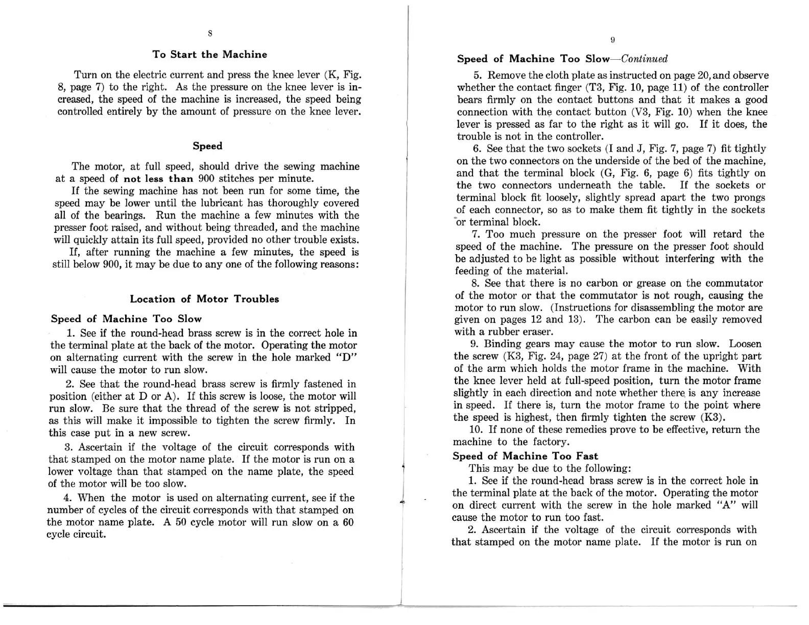 the knee lever held at full-speed position, turn the motor frame