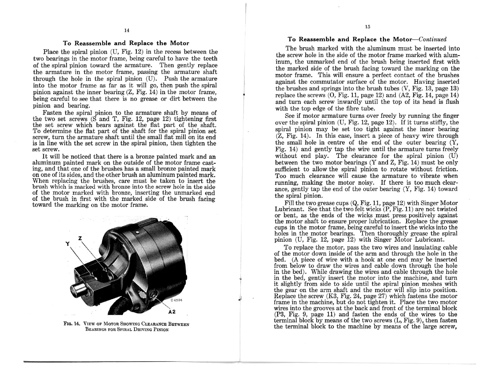 pinion (U, Fig. 12, page 12) with Singer Motor Lubricant.