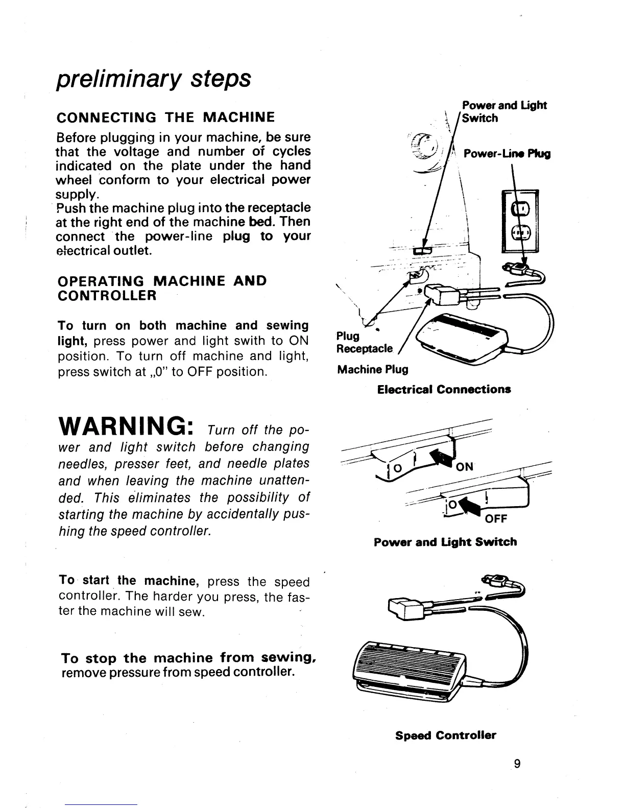 Singer 1021 - Getting Ready to Sew; Connecting and Operating the Machine