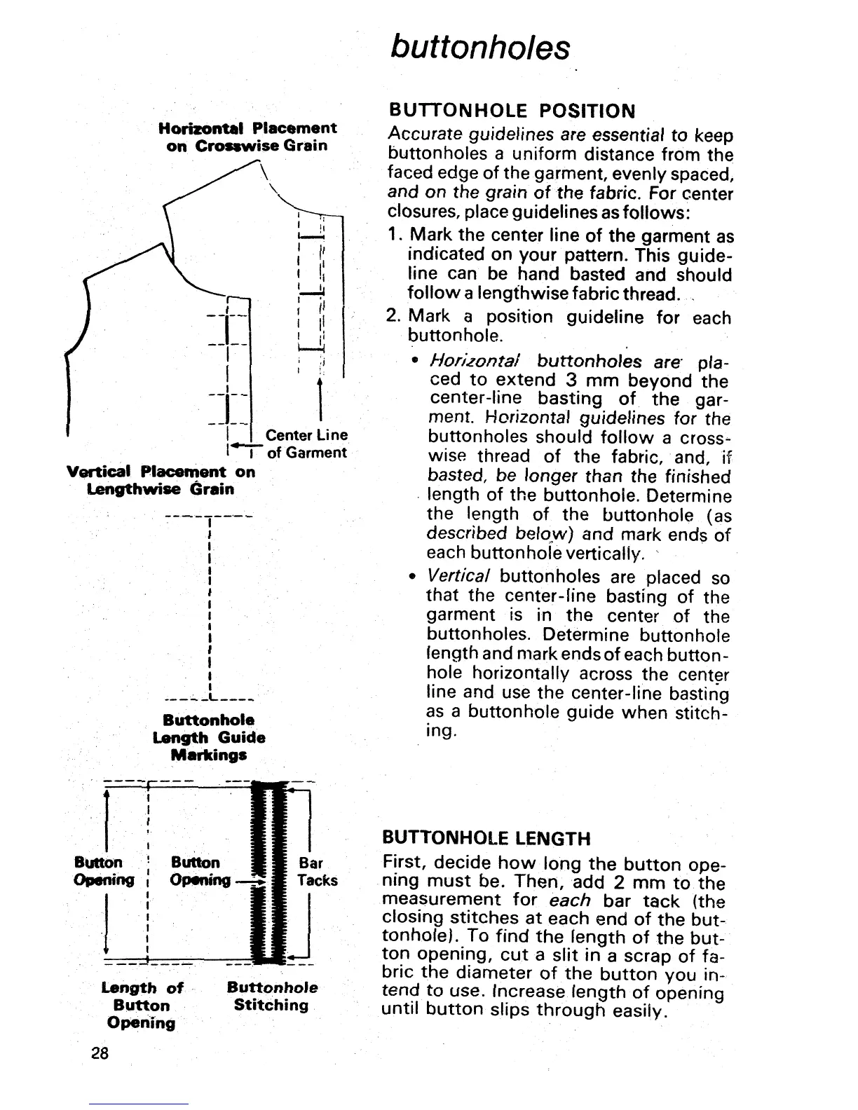 Singer 1021 - Buttonhole Positioning and Length