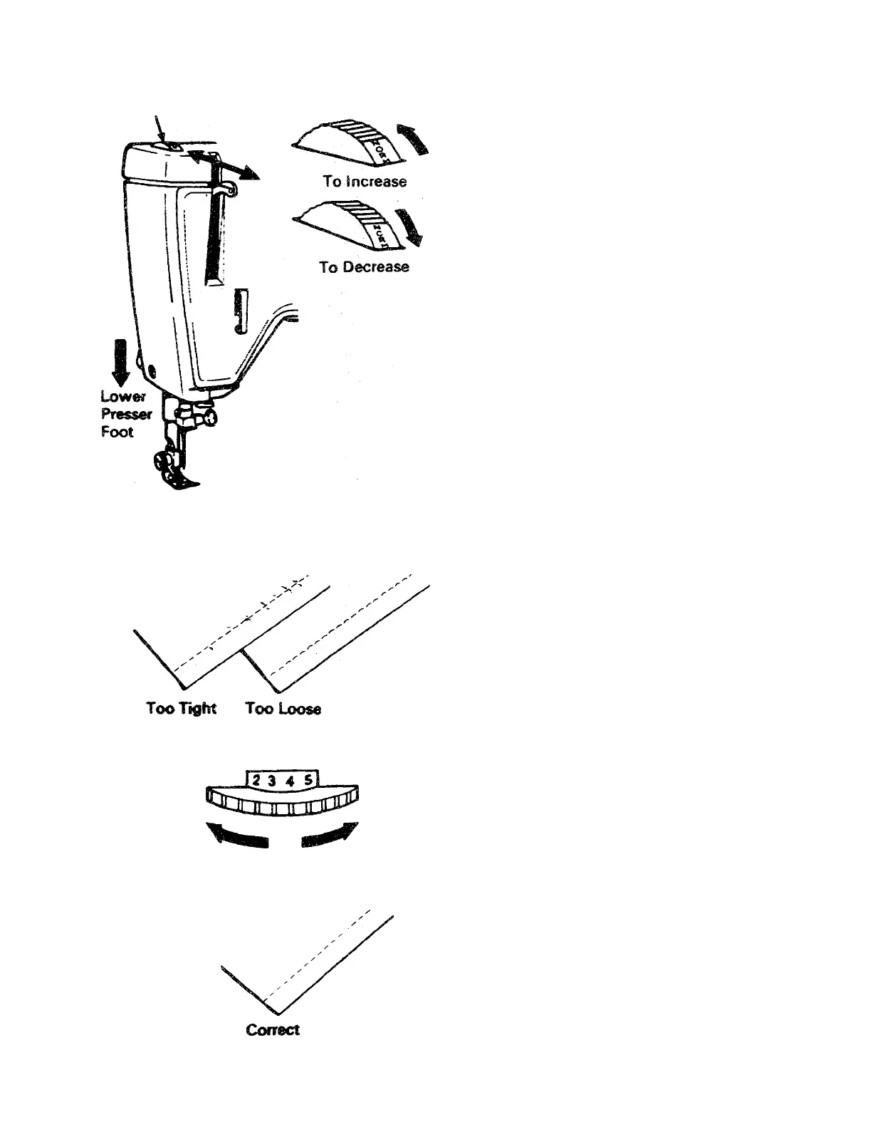 the fabric puckers, decrease tension.